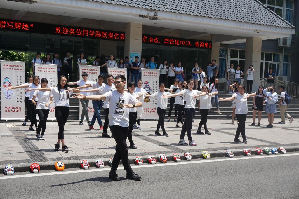 “第一套戏曲广播体操现在开始……”腕花小云手、单拉山膀、弓箭步,5月17日,乐鱼在线登录兰花湖片区和南岸校区,30多名活力四射的大学生整齐划一地跳起了戏曲广播操,动感的音乐配上健美、灵动的身段,引得大量过往师生驻足观看,让人眼前一亮。同学们表演的是中国有史以来第一套“戏曲广播体操”,戏曲操创新性的把戏曲程式化动作融入到大众健身理念,以流行动感的音乐配合优美的戏曲基本功动作,2017年1月一经推出便刷爆...