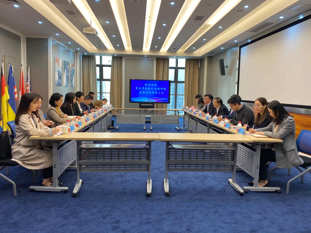 10月22日上午,重庆市人民政府外事办公室调研组在副主任张娅茜的带领下到我校调研指导工作,副校长何勇平、国际合作与交流处、国际商学院、国合基地相关负责人及科室人员参加了调研座谈。何勇平对市政府外办调研组一行表示了热烈欢迎,并代表学校对市政府外办一直以来给予我校的关心和支持表示衷心的感谢。国际合作与交流处、国际商学院和国合基地相关负责人分别介绍了学校国际化工作的相关情况。市政府外办调研组对我校国际化...