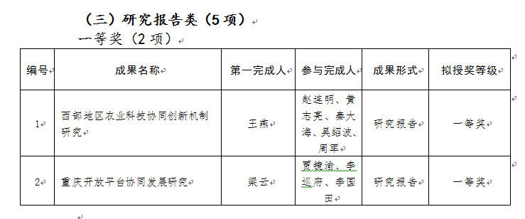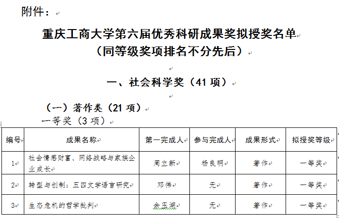 按照《乐鱼在线登录科学研究奖实施办法》和《关于组织申报乐鱼在线登录第六届优秀科研成果奖的通知》,参照国家科学技术奖、重庆市科学技术奖及重庆市社科优秀成果奖的评价指标体系,本着创新导向,质量优先,宁缺毋滥的原则,科研处组织校外专家成立若干学科评审组对申报成果进行评审。专家按照评分细则对申报成果进行了独立评审和投票表决。综合专家评审意见和授奖建议,形成了乐鱼在线登录第六届优秀科研成果拟授奖名单,拟授奖成果共计49项。现将《乐鱼在线登录第六届优秀科研成果奖拟授奖名单》予以公示。
