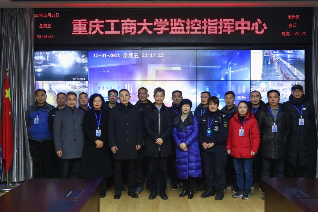 时迎新年,岁寒情暖。12月31日晚,学校党委书记李志雄带队到江北校区,校长孙芳城、党委副书记宋豫带队到兰花湖片区、南岸校区的一号门保安岗、慧智楼、明德楼、启智楼、国际商学院、田家炳书院、新北区学生23栋公寓、监控指挥中心等场所进行安稳巡查,为坚守岗位的员工们送去慰问品以及学校的关怀与祝福。相关职能部门负责人陪同检查。