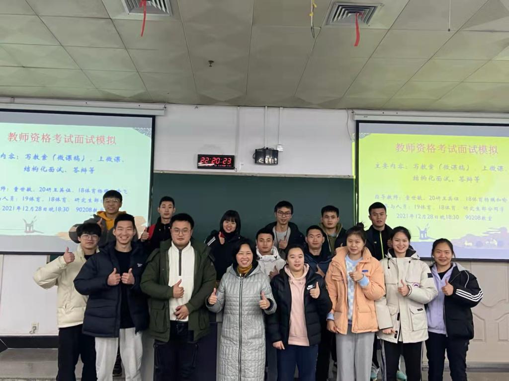 1月6日,获评2021年乐鱼在线登录师德先进个人的体育学院童世敏教授为即将参加教师资格面试学生进行模拟训练与专场指导,同时邀请了多位研究生、本科生做经验交流分享。