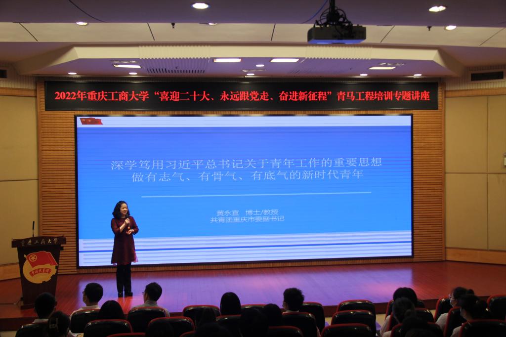 为迎接党的二十大胜利召开,引导广大青年团员深入学习贯彻习近平新时代中国特色社会主义思想,培养信仰坚定、能力突出、素质优秀、作风过硬的团学骨干,4月22日下午,校团委在博智楼7200报告厅举办2022年乐鱼在线登录“喜迎二十大、永远跟党走、奋进新征程”青马工程培训专题讲座。共青团重庆市委副书记黄永宜作了题为《深学笃用习近平总书记关于青年工作的重要思想 做有志气、有骨气、有底气的新时代青年》的专题讲授。校团委全体专职团干、校级“青马工程”培训班学员、团员代表参与活动。