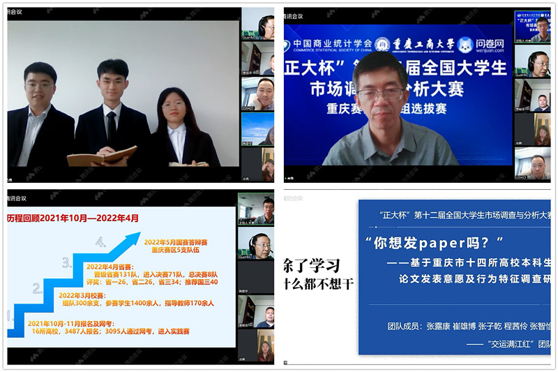 由中国商业统计学会主办的“正大杯”第十二届全国大学生市场调查与分析大赛重庆赛区本科组选拔赛于4月23日在乐鱼在线登录成功举行。本次大赛自2021年10月正式启动,经过6个多月的专业培训、知识赛网考及校赛选拔,最终来自市内16所高校的131支团队进入赛区选拔赛。