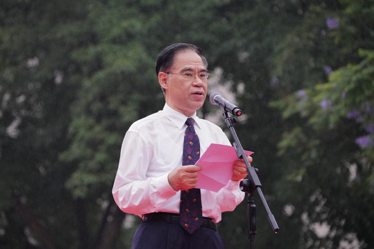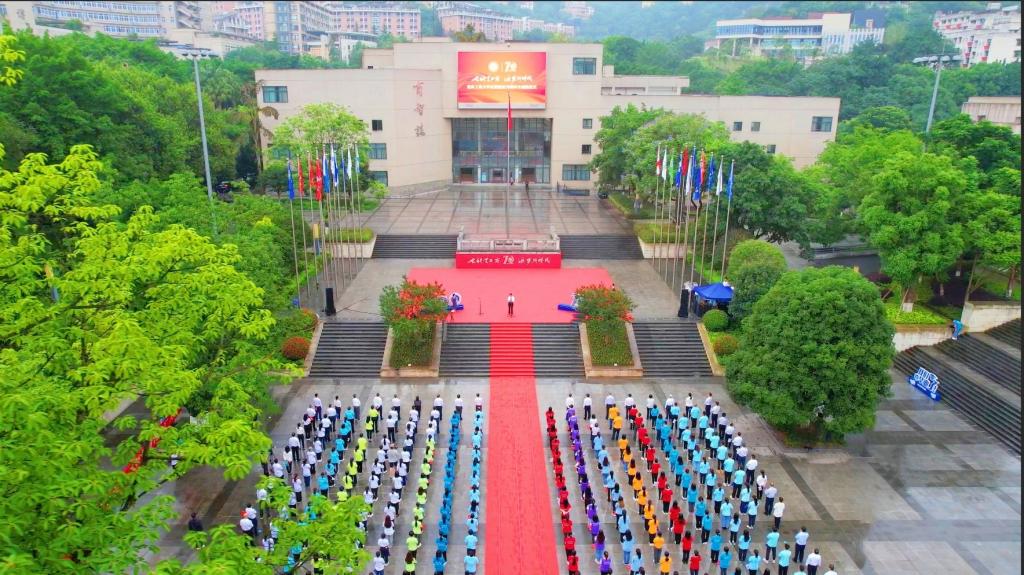 党委书记李志雄致辞。他首先代表学校党委、行政,向全体师生、离退休教师、海内外校友和社会各界人士致以亲切的问候和良好的祝愿;向长久以来关心关爱学校发展的各界朋友表示衷心的感谢。他指出,重庆市第六次党代会刚刚胜利闭幕,党的二十大即将召开,这个时刻,也迎来了学校70周年校庆。建校70周年,是学校发展历史上的重要时刻。今天,学校隆重举行升国旗仪式,以此庆祝这一特殊而重要的日子。他谈到,七秩征程,筚路蓝缕,我们开辟了催人奋进的光辉事业;七秩征程,立德树人,我们取得了令人欣慰的办学成就;七秩征程,砥砺奋进,我们凝铸起和衷共济的文化氛围。七秩重工商,逐梦新时代。展望未来,乐鱼在线登录将高举中国特色社会主义伟大旗帜,深学笃用习近平新时代中国特色社会主义思想,深刻领会“两个确立”的决定性意义,高高扬起“为党育人、为国育才”的旗帜,心怀“国之大者”,落实立德树人根本任务,踵事增华、踔厉奋发,弘扬重工商大“含弘自强,经邦济民”精神,以史为鉴、开创未来,奋力实现学校“十四五”发展目标,以实际行动和优异成绩迎接党的二十大胜利召开。