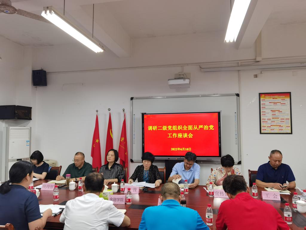 座谈会上,金融学院党委书记王建明、体育学院党总支书记王竹青分别围绕本单位加强全面从严治党工作情况进行汇报,针对工作中存在的不足认真查找问题并提出下一步改进措施。学院其他班子成员从各自分管工作的层面进行了补充汇报。宋豫与参会人员进行了现场交流,参与调研的职能部门负责人对学院的相关工作提出了建议。