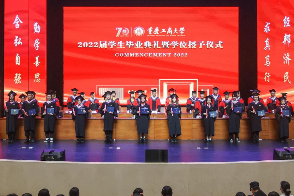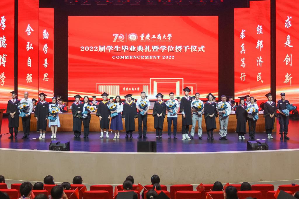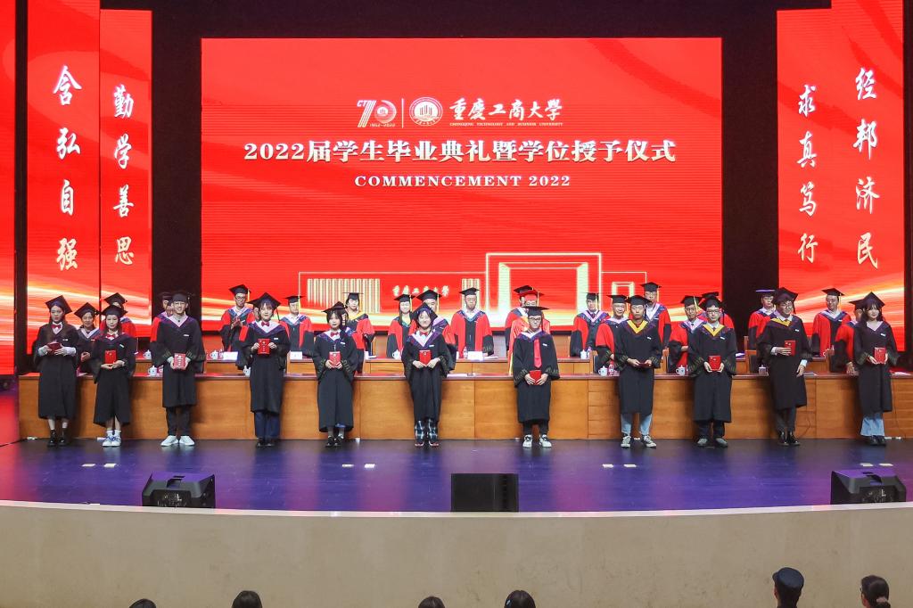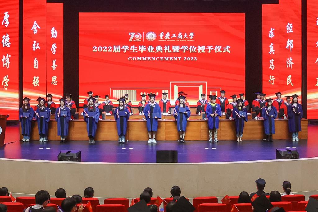 随后,师生们齐唱校歌《大路漫漫其修远长》。随着《星辰大海》旋律响起,学校领导和与会教师全体起立,用温暖的注视和闪闪的星光陪伴2022届毕业生们离开会场。2022届学生毕业典礼暨学位授予仪式落下帷幕。