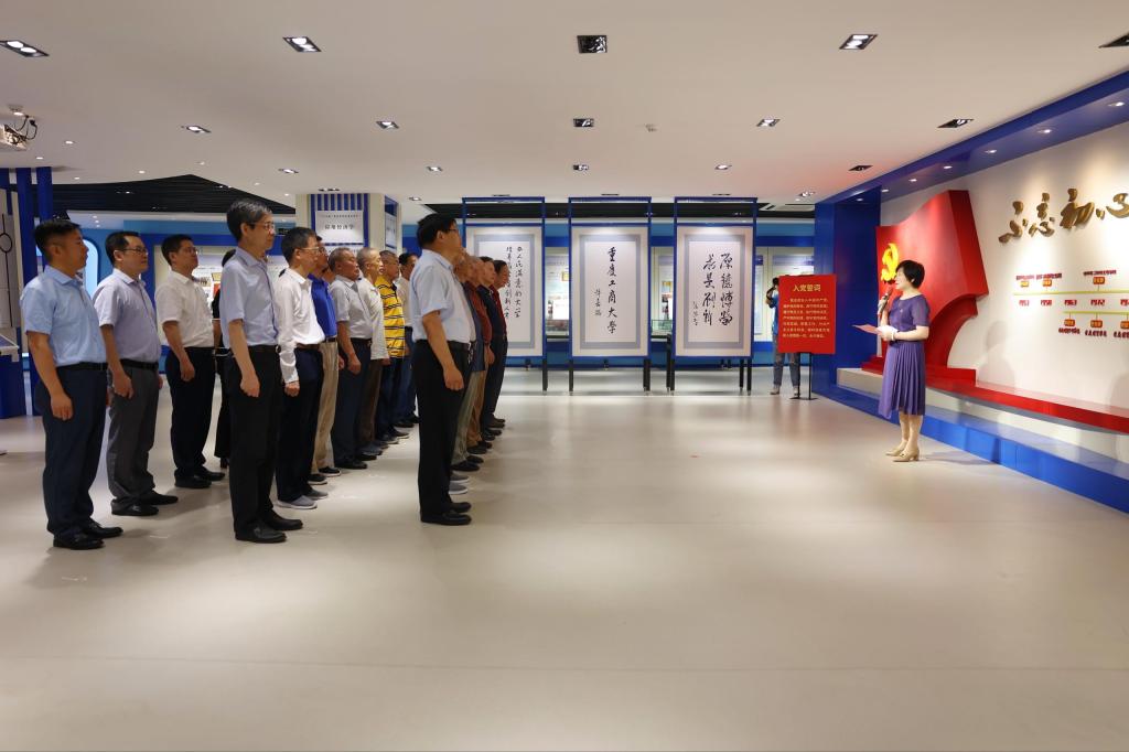 为庆祝中国共产党成立101周年和我校建校70周年,7月1日上午,我校举行“庆祝七一重温70年校史”学校退休校领导参观校史馆活动。吴应发、张柏村、戴宏民、周希贤、王崇举、廖元和、张宗礼、甘德潜、黄朗、高古城、黄志亮等11位退休校领导,学校党委书记李志雄,党委副书记、校长孙芳城,党委副书记宋豫,党委组织部、党委宣传部和党政办、离退休工作部相关职能部门负责人参加。活动由宋豫主持。