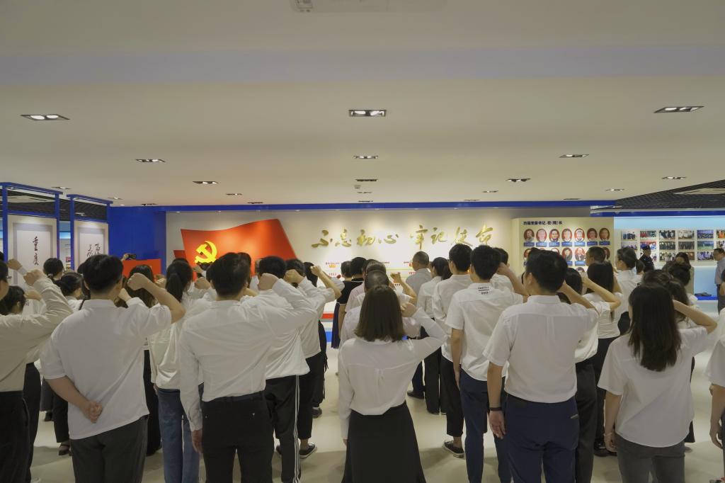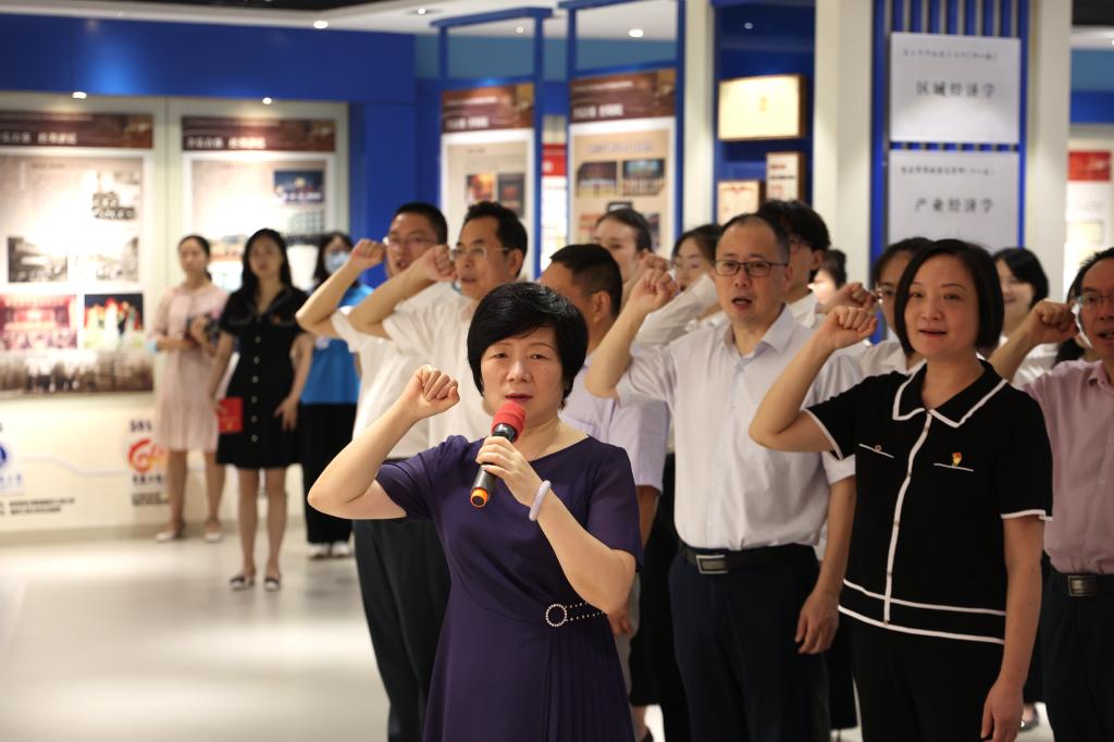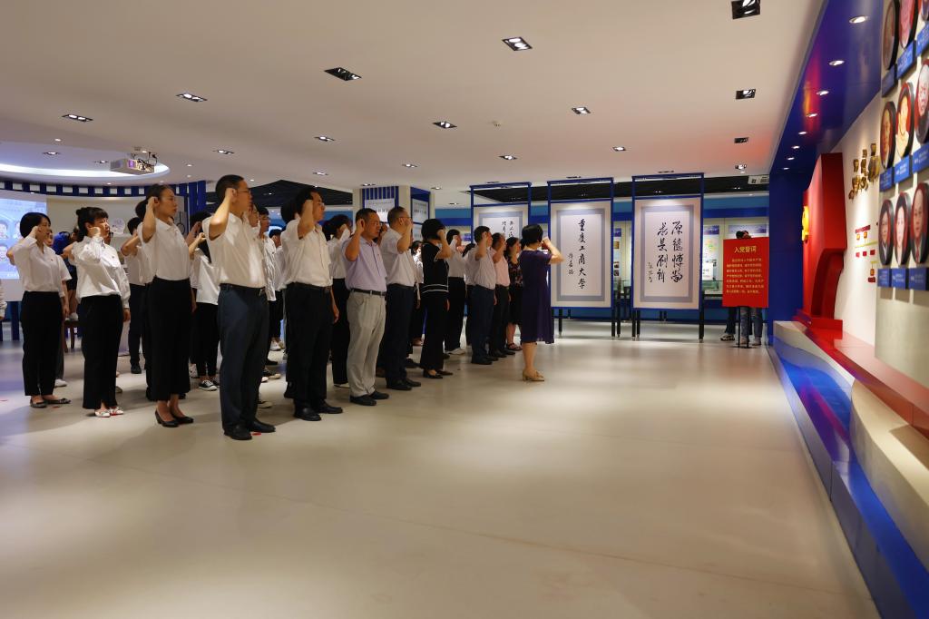 7月1日上午9点,为庆祝中国共产党成立101周年,秉承初心使命、牢记党员身份,我校在学校校史馆举办入党宣誓及重温入党誓词活动。学校党委副书记宋豫,党委职能部门负责人,机关党委、管理科学与工程学院党委、马克思主义学院党委、人工智能学院党委、环境与资源学院党委等二级党组织书记、副书记、专职组织员及师生新党员代表共计50余人参加活动。活动由党委常委、党委组织部部长郑夕春主持。