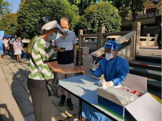 8月23日,数学与统计学院程素丽老师不顾高温酷暑报名参加社区志愿服务。8月24日早上5:30,程老师便早起集合,5:40,就开始进行核酸登记。而这个重复的扫码工作一直持续到11:50。在40度的高温下,程老师早已汗流浃背,但她没有抱怨也没有诉苦,默默坚持在自己的岗位上,为疫情防控贡献自己的一份力量。程素丽老师说到:“作为一名共产党员、一名人民教师、一名孩子的妈妈,我有责任也有义务参与到疫情防控中,为家乡和人民服务。我希望用自己的行动给学生、给孩子树立优秀的榜样,彰显一名共产党员的使命和担当。”