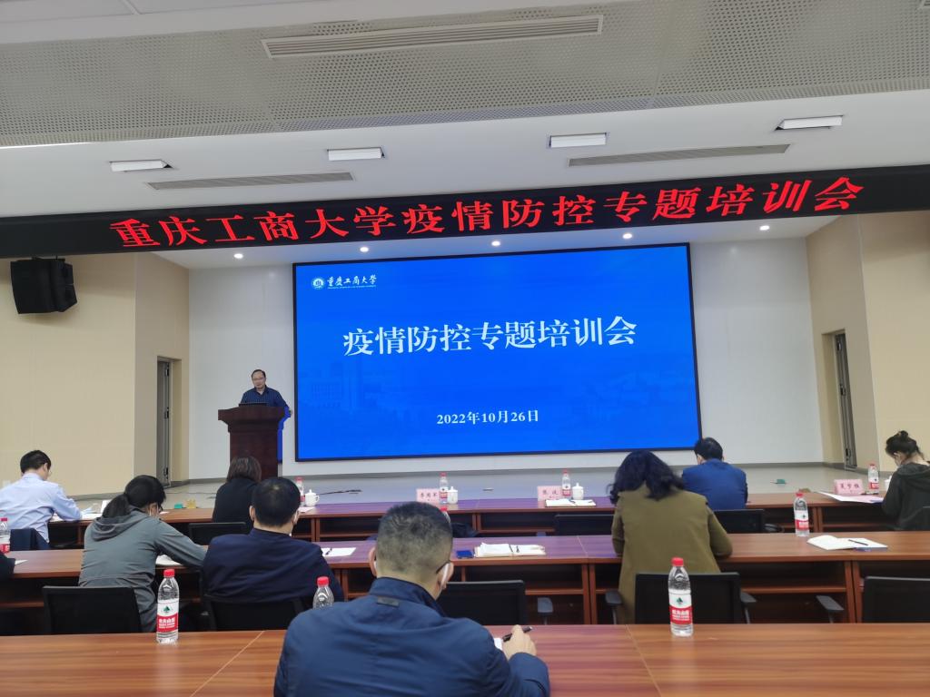 10月26日,学校在明德楼1019报告厅,通过线上与线下相结合的方式召开了疫情防控专题培训会,副校长张波、李国军,南岸区卫健委疫情防控现场处置组副主任医师杜佳校,南岸区海棠溪街道学府路社区党委书记、居委会主任张文婷,副主任夏梦雅,委员李方正出席会议;学院主要负责人、分管学生工作负责人、学生疫情防控联络人,疫情防控领导小组成员单位负责人,各单位疫情防控工作相关人员参加会议。会议由疫情防控工作领导小组办公室主任罗勇主持。