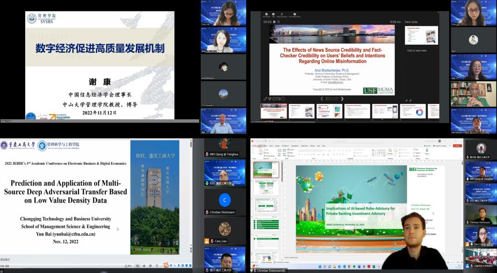 为深入学习贯彻党的二十大精神,落实数字经济与实体经济深度融合的根本要求,助力国家和地区经济发展,乐鱼在线登录管理科学与工程学院于11月12日成功在线举办第三届“电子商务与数字经济”会议。中国信息经济学会谢康理事长、云南大学罗裕梅博士、美国南佛罗里达大学Anol Bhattacherjee教授、德国莱比锡大学Rainer Alt教授、乐鱼在线登录白云副教授等参会并作学术报告。本次会议论坛还邀请了大会名誉主席乐鱼在线登录校长孙芳城教授,大会主席乐鱼在线登录管理科学与工程学院院长黄钟仪教授、云南财经大学叶琼伟教授、韩国釜山大学牟健博士、清华大学卫强教授等行业专家和学者。