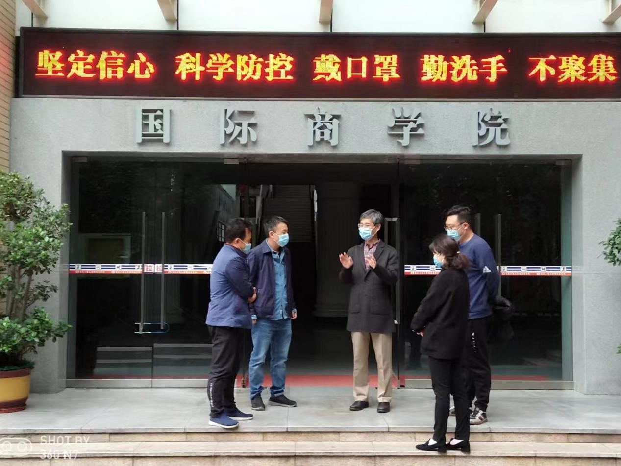 校领导分别走访了各学院和相关职能部门,听取了单位关于疫情防控工作的汇报,了解各单位在工作中存在的问题和困难,并及时协调处置。每到一处,校领导都与老师们亲切交谈,叮嘱大家要时刻注意身体健康,安排好作息时间,提高自我防护能力,做到劳逸结合。在学生宿舍,校领导为同学们讲解了当前的疫情防控形势,希望同学们在特殊时期要时刻做好防护、注意安全,要认真参与线上学习,有问题及时向任课老师、辅导员反馈,学校将及时回应学生的关切。在学生食堂,校领导认真检查食堂后厨备餐情况,要求食堂工作人员要把师生健康放在第一位,强调做好食品安全卫生等工作。在校大门和核酸检测点,校领导仔细检查校门安保值守情况和师生核酸检测组织开展工作情况,强调要筑牢学校安全防线。