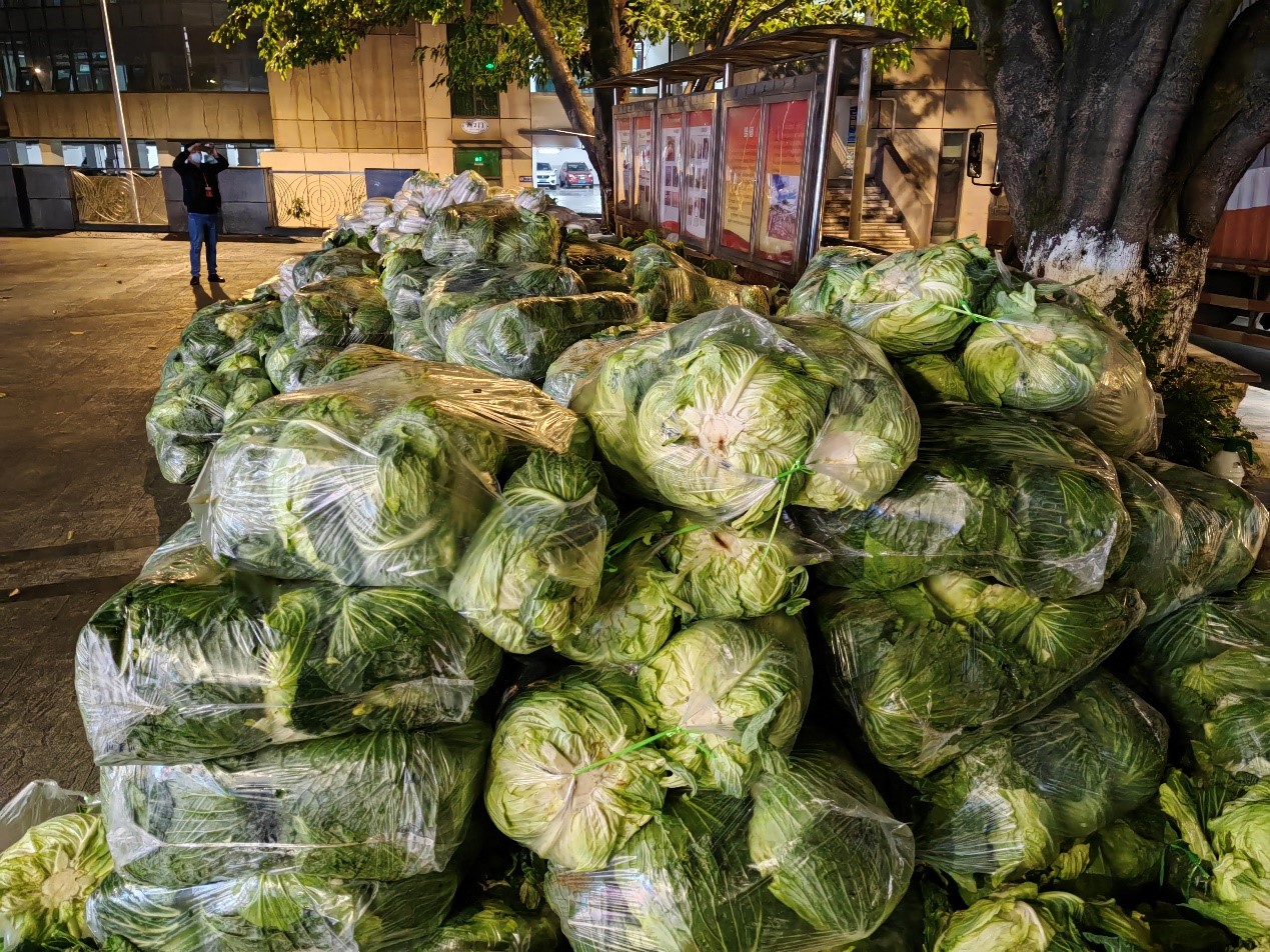 近日,学校的疫情防控形势牵动着广大校友和关心学校发展的社会爱心人士的心,当得知学校保供压力大,蔬菜、粮油等物资供应紧张时,为了帮助学校师生在抗疫时吃饱饭,多名校友和爱心人士克服疫情影响下采购、物流等重重困难,向学校捐赠20余吨蔬菜等物资,在学校党委统战部、校友办和后勤处的协调下,已于11月25日夜间抵达学校,将有效缓解食堂供给压力。其中,石柱蔬菜协会和电商协会向我校兰花湖片区和江北校区捐赠了包括蔬菜、大米和食用油在内的约7吨左右的物资;我校校友联系潼南区工商联合会和潼南区女企业家商会向我校南岸校区和江北校区捐赠了萝卜、白菜等15吨爱心蔬菜。