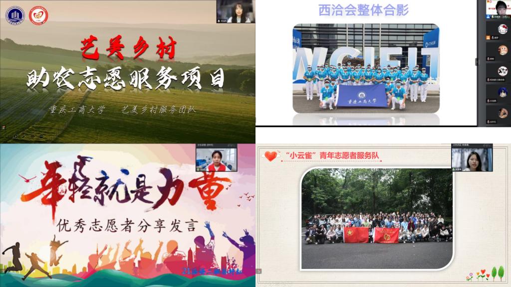 11月25日,我校第十五届“新儒商”志愿文化节开幕式在腾讯会议举行。重庆市志愿者服务指导中心主任龙江、教务处处长骆东奇、校团委副书记胡婧婷、校院志愿者组织代表、“青翠100”志愿者参加活动。