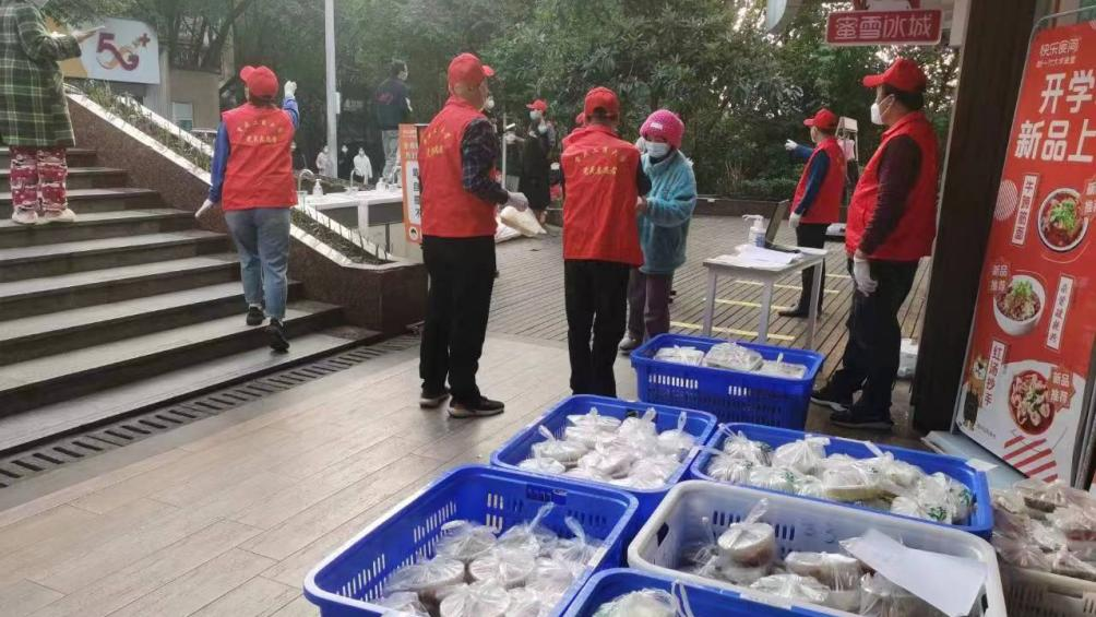 杨光祥正在为封控楼栋南8学生送餐