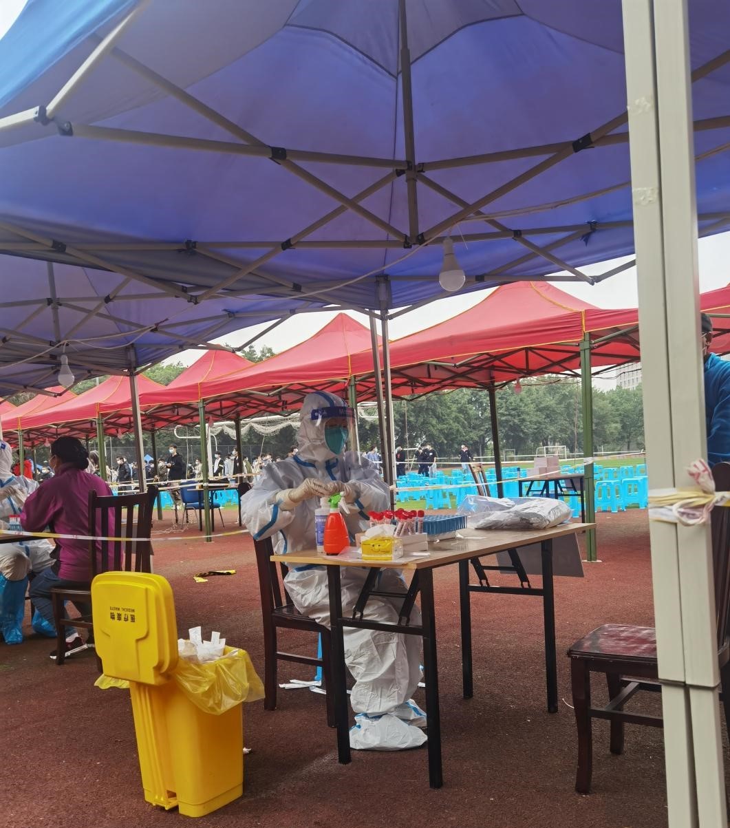 作为临床医学博士,人事处曾一同志主动发挥专业优势,在学校核酸采集工作人手紧缺的情况下,积极报名参加核酸采集工作。学校第一批上岗的核酸采集志愿者中,她是唯一一名女同志。这一次采集工作从下午2点持续工作到晚上10点。在这8个小时里,她不断重复做好手部消毒、拆开包装、喉部采样、折断咽拭子等一系列动作,哪怕手酸得打哆嗦,也坚持保证步骤完整、动作到位。她说这样才能确保采样有效。