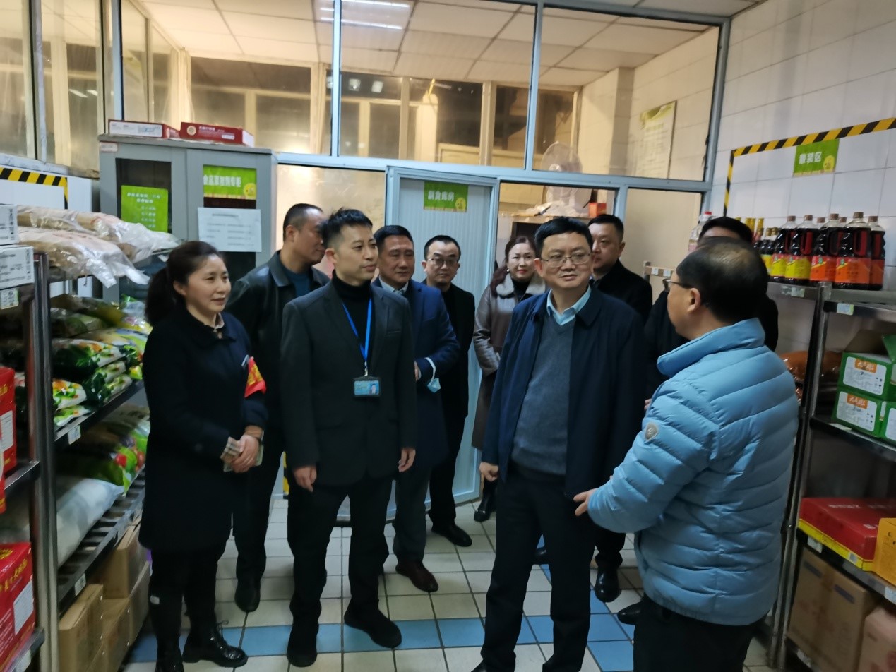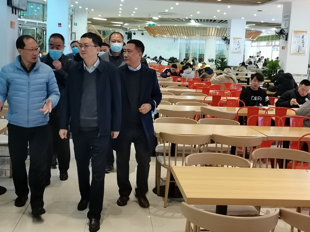 3月2日下午,南岸区副区长蒋文新带领区政府办公室、区教委、区市场监督管理局、海棠溪街道办事处负责人对我校学生食堂食品安全工作进行实地考察调研。我校党委常委、副校长张波,相关职能部门负责人陪同检查。