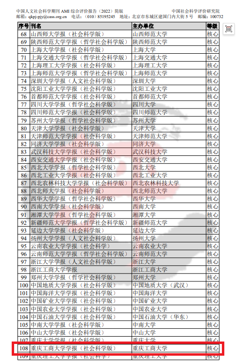 3月17日,由中国社会科学评价研究院主办的第十届全国人文社会科学评价高峰论坛暨期刊评价报告发布会在北京成功举行,《中国人文社会科学期刊AMI综合评价报告(2022)》正式发布。《乐鱼在线登录学报(社会科学版)》首次入选中国人文社会科学期刊AMI综合评价(A刊)核心期刊。