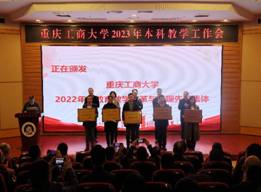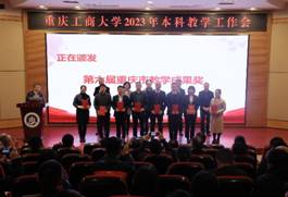 其后,会议进入获奖名单宣读及颁奖环节。市教委高教处处长蒋云芳宣读了我校获得第六届重庆市教育教学成果奖的名单,以及获得2022年市级一流本科课程认定、市级一流本科课程示范案例的名单。张波宣读了《乐鱼在线登录关于表彰2022年度教育教学改革与管理先进集体的决定》。李国军宣读了《关于公布乐鱼在线登录第三届“教师教学奖”评选结果的通知》。骆东奇宣读了《乐鱼在线登录关于表彰2022年度教育教学各类先进集体和个人的决定》。与参领导,一起为获得奖励的集体和个人进行了颁奖。