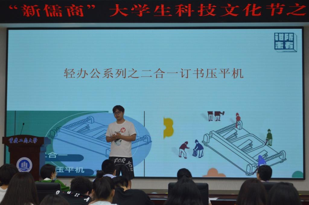 本次比赛共收到作品121份作品,经过初赛的严格筛选,共有8支团队脱颖而出,进入决赛。决赛项目具有创新性和实用性,有轻办公系列的二合一订书压平机,还有为同学服务的Games赛事通,更有分体式可循环快递箱等技术创新的便民项目。决赛中,各支队伍准备充分,围绕产品或服务特性、市场分析、商业模式、财务分析、风险防范、发展愿景等方面进行项目展示,思路清晰,有理有据。项目答辩环节,评委老师们结合参赛队伍的作品特点与涉及的金融投资相关专业性问题进行提问,选手们积极思考和回应,体现出较好的思辨精神和专业素养。经过紧张而精彩的角逐,最后“钳所未有队”与“赛事通小队”荣获一等奖。