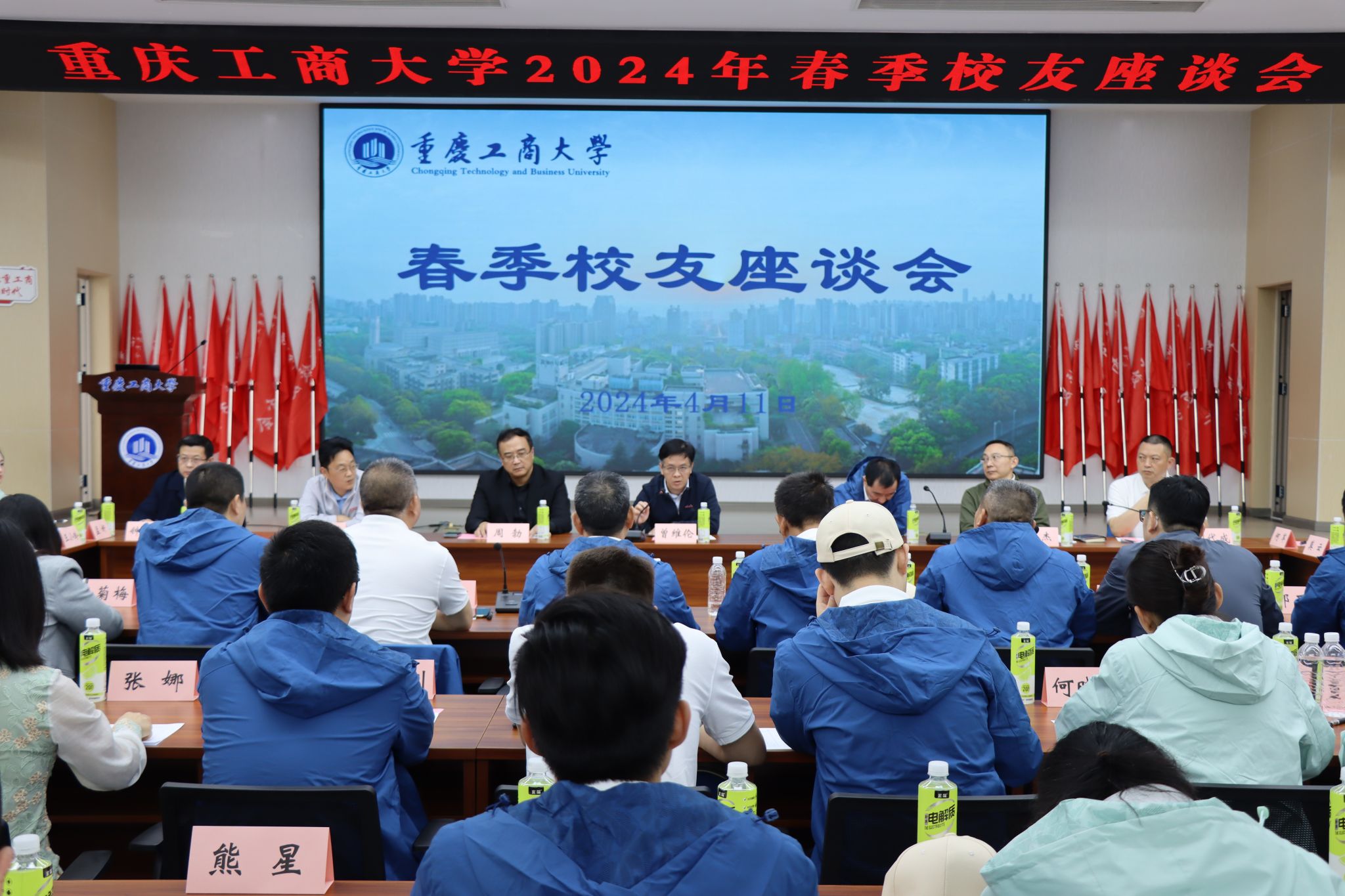 4月11日,学校春季校友座谈会在明德楼天健报告厅举行。学校党委书记曾维伦,党委常委、副校长赵骅,党委常委、宣传部部长华杰,党委学工部、学生处部长、处长申卫东,国内处、校友办处长、主任刘代成,招生就业处处长钟增胜,国内处、校友办副处长、副主任孟妍,学校校友会副会长周勃、何军、王小玲等应邀出席,参加学校第二十二届田径运动会的60名校友代表参加会议。