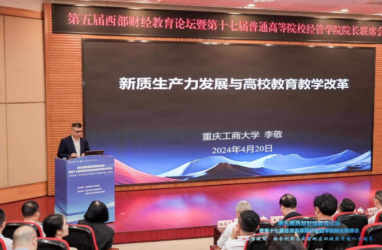 我校经济学院院长宋瑛主持主旨演讲。李敬作关于“新质生产力发展与高校教育教学改革”的主旨演讲,深入阐释了新质生产力的内涵、理论形成、新质生产力理论下高校的教育教学改革关注的内容以及乐鱼在线登录相关的实践。