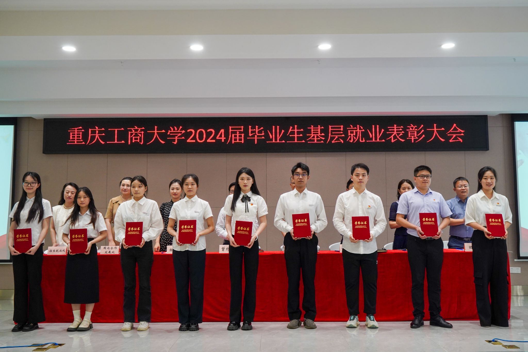 会议伊始,陈运超宣读了《乐鱼在线登录关于表彰 2024 届基层就业先进个人(第一批)的决定》。重庆市 2023 年高校毕业生“基层就业卓越奖”获得者、马克思主义学院 2019 届毕业生、新疆克州阿克陶县奥依塔克镇人民政府四级主任科员张文军作了视频分享发言,他分享了在基层工作中如何践行“厚德博学,求是创新”校训的心得体会,并寄语学弟学妹们树立正确的职业观,加强学习,提升综合素质,选择基层,扎根基层。2024届基层就业学生代表金融学院袁菲、会计学院李科璇、法学与社会学学院吴文武分别进行了现场分享发言,他们回顾了在母校度过的青春岁月,交流了自己在大学期间的所思所悟所得,细致地梳理了在校园求学的丰富硕果,由衷地表达了对母校深深的眷恋与无尽的感激,为学弟学妹们提供了宝贵的学习与职业发展建议。分享结束后,参会领导为基层就业学生代表颁发了荣誉证书并赠送《习近平的七年知青岁月》一书。