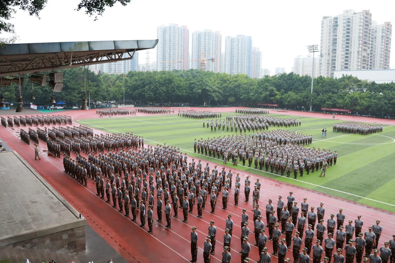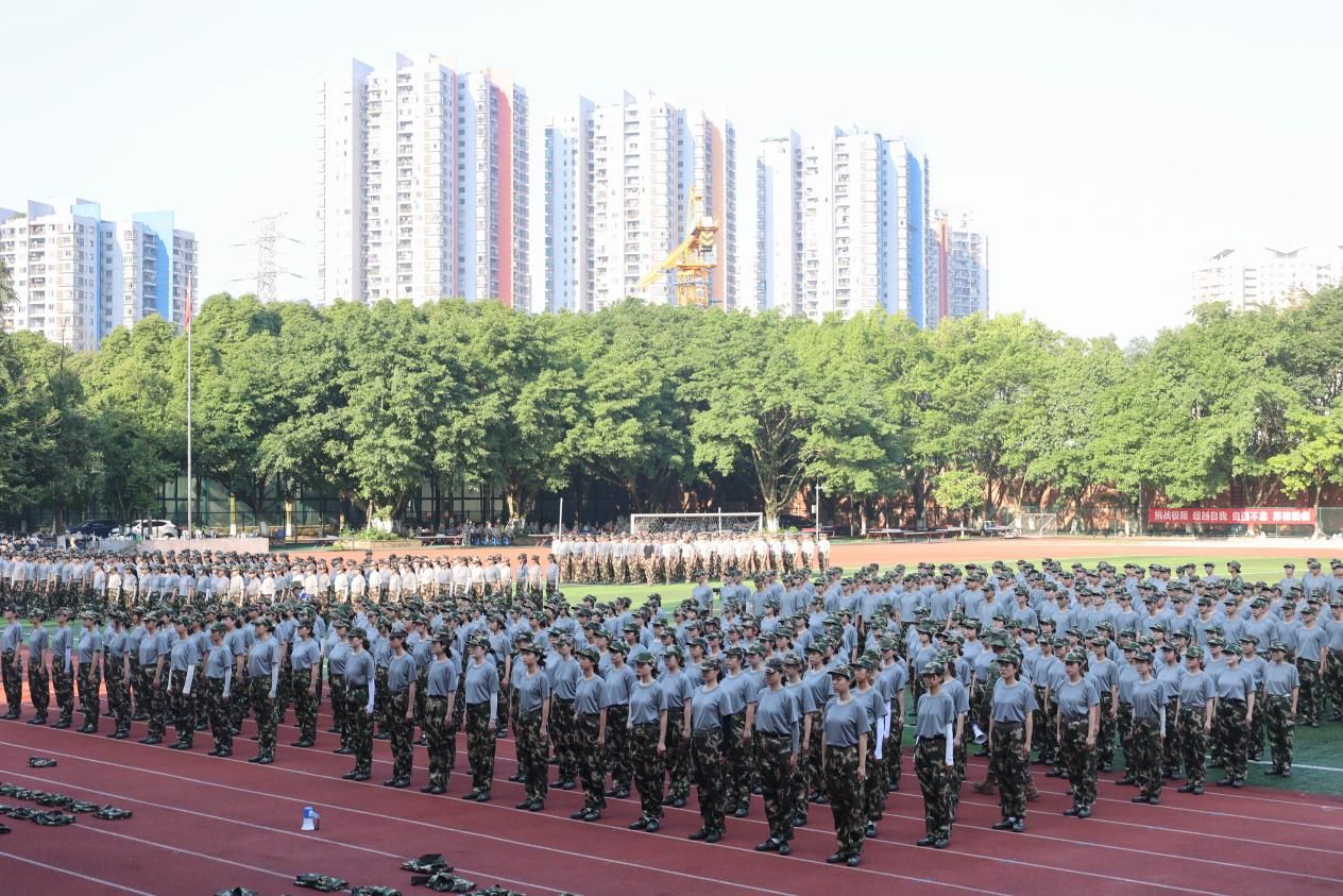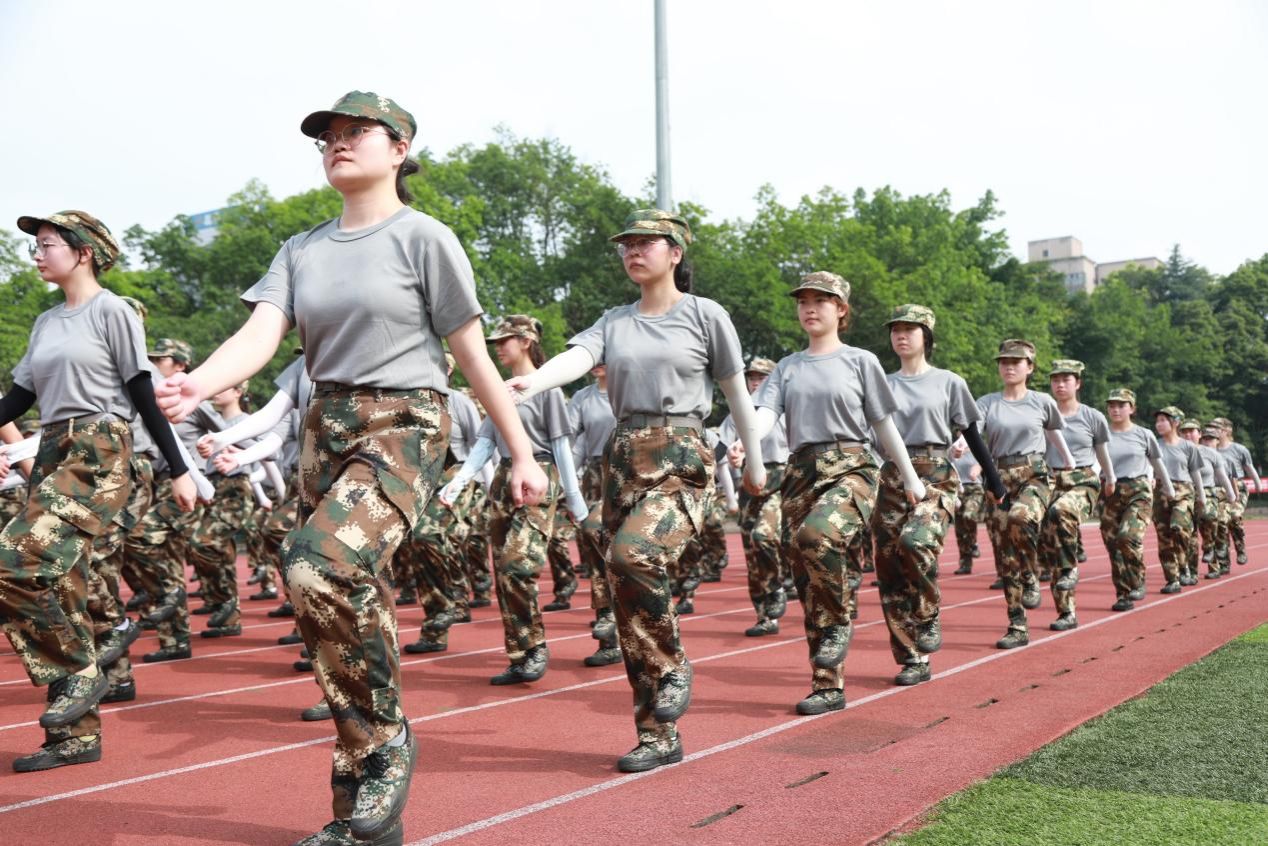 操场上,一群朝气蓬勃的重工商大学子,身着统一的迷彩服,踏着坚定的步伐,用汗水书写着青春最亮丽的篇章。