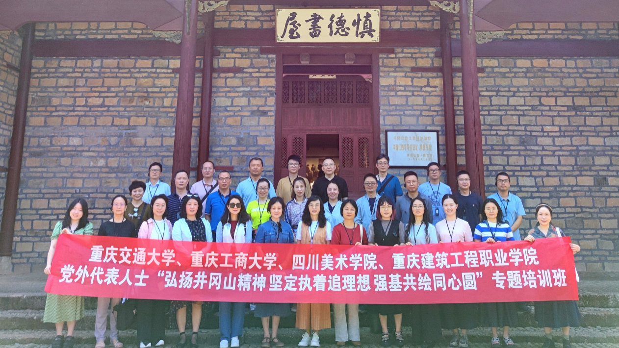 为深入学习贯彻落实中国共产党的二十大精神和习近平总书记视察重庆重要讲话重要指示精神,持续巩固“凝心铸魂强根基,团结奋进新征程”主题教育成果,落实上级有关支持各民主党派、无党派人士开展纪律学习教育工作要求,进一步加强党外代表人士队伍建设,在学校党委和行政的关心支持下,7月9日至14日,我校联合重庆交通大学、四川美术学院、重庆建筑工程职业学院在井冈山市委党校开展了党外代表人士“弘扬井冈山精神 坚定执着追理想 强基共绘同心圆”专题培训班。来自四所高校的36名民主党派基层组织、统战团体领导班子成员,党外优秀年轻干部及统战干部参加了培训,我校选派14名学员参训。