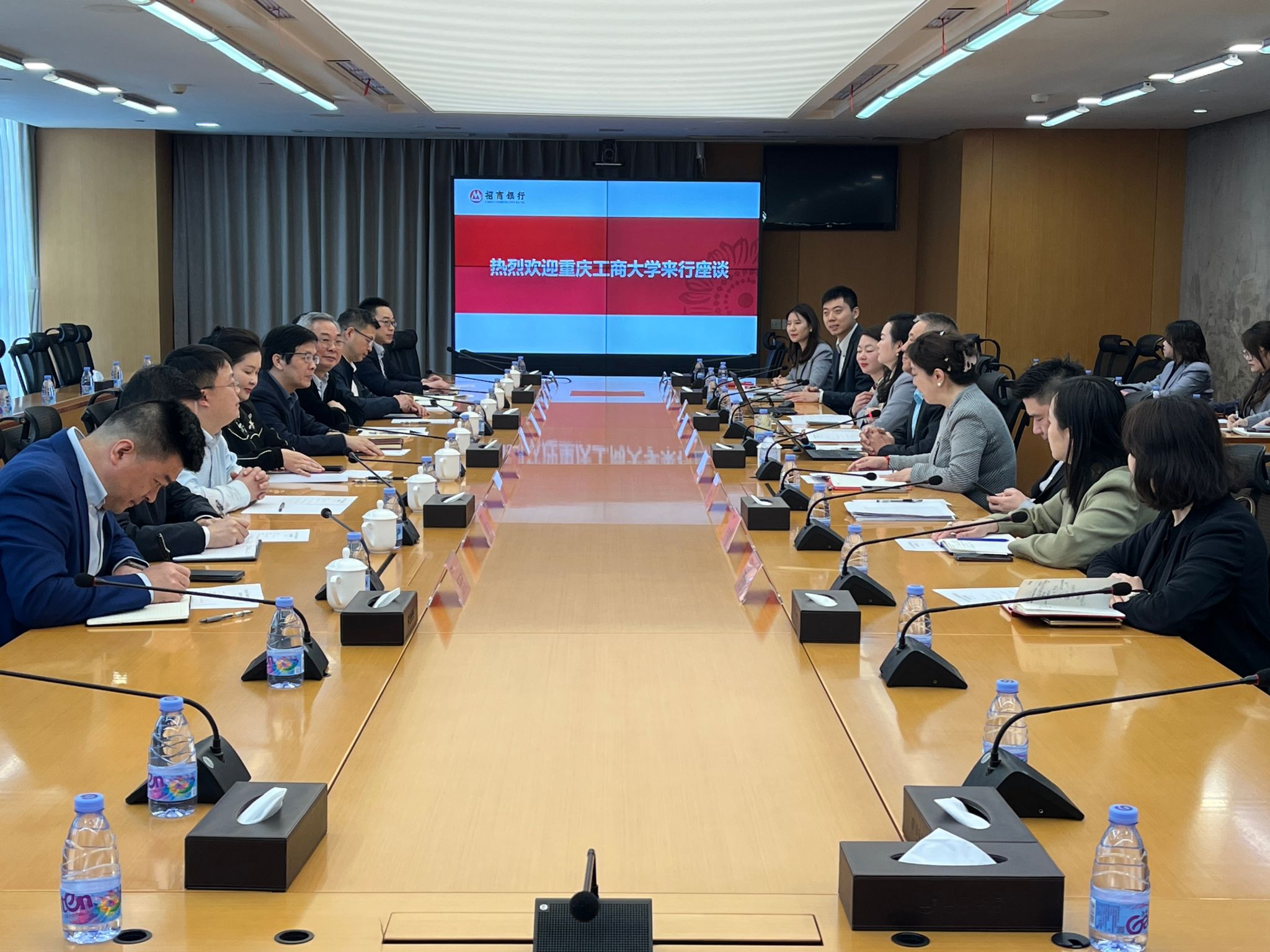 3月25日,学校党委书记曾维伦,党委常委、副校长李国军带领国内合作发展处、招生就业处、校团委、金融学院、重庆金融科技研究院等部门、学院和机构负责人赴招商银行重庆分行洽谈校企合作事宜,开展访企拓岗促就业专项行动并看望慰问了在行工作的部分校友。招商银行重庆分行党委书记魏广文,分行党委委员、副行长刘丽及其人力资源部、零售信贷部、机构客户部、零售银行部、南岸综合支行负责人参加座谈。座谈由刘丽主持。
