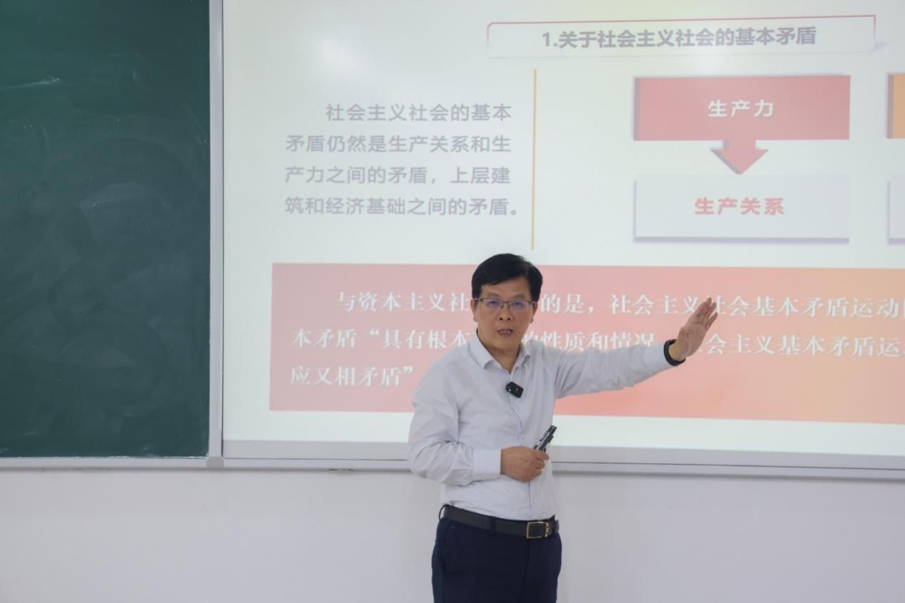 4月17日下午,学校党委书记曾维伦走进慧智楼90204教室,为人工智能学院2023级人工智能一、二班的本科生讲授“毛泽东思想和中国特色社会主义理论体系概论”课。