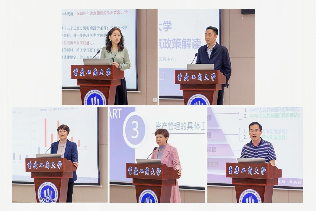研究生院、人事处、财务处、资产处、采购与招投标管理中心等部门主要负责人分别围绕日常工作息息相关的制度文件作解读培训。