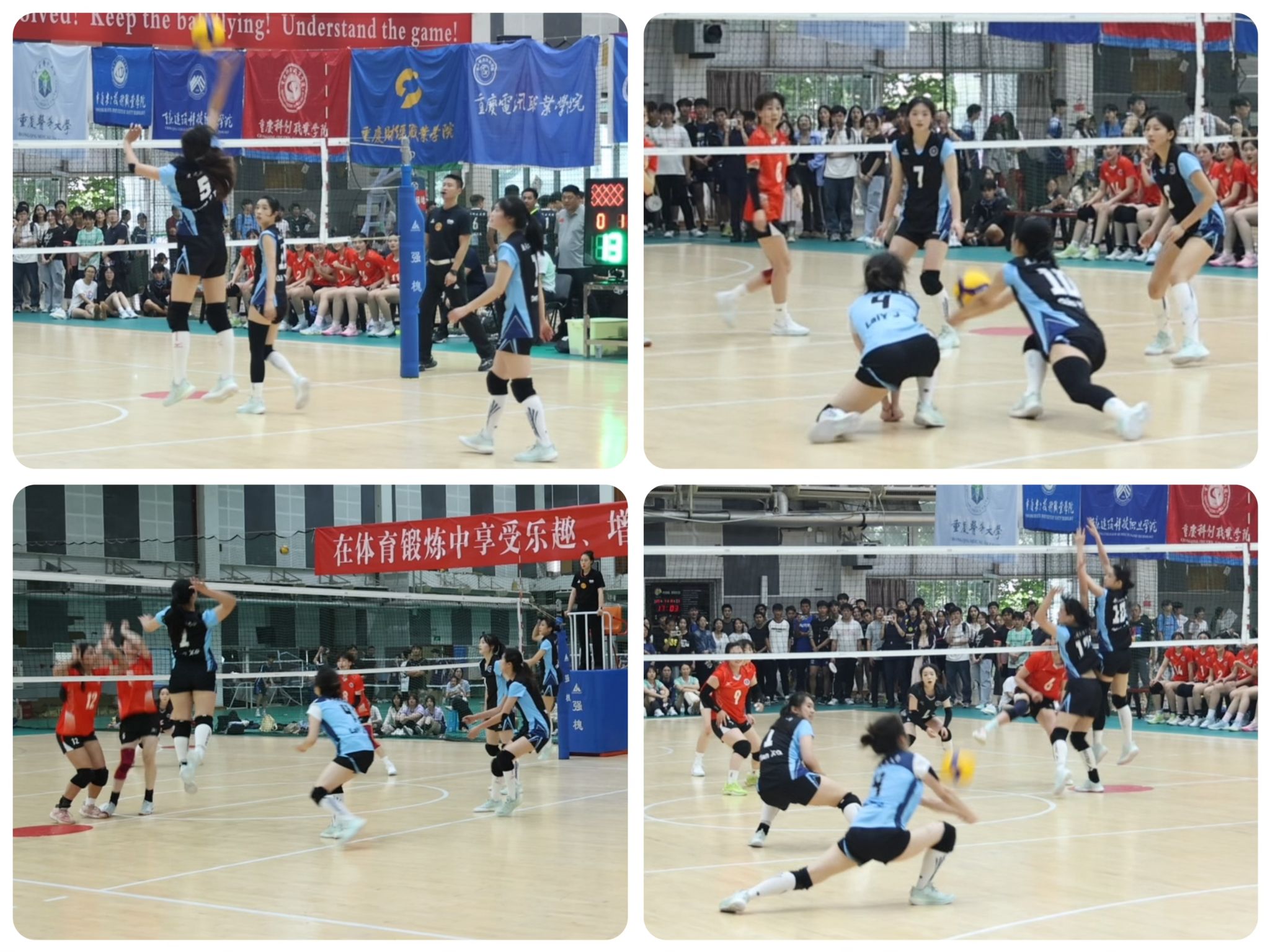 5月13日至17日,重庆市2025年大学生排球比赛在西南政法大学体育馆举行。本次比赛由重庆市教育委员会主办,西南政法大学承办。比赛共有36所高校62支队伍1000多名运动员参赛,分为甲组(本科院校普通学生)、乙组(高职高专院校普通学生)和丙组(高水平及体育专业学生)三个组别。我校共派出2支排球队分别参与了男、女丙组的比赛。