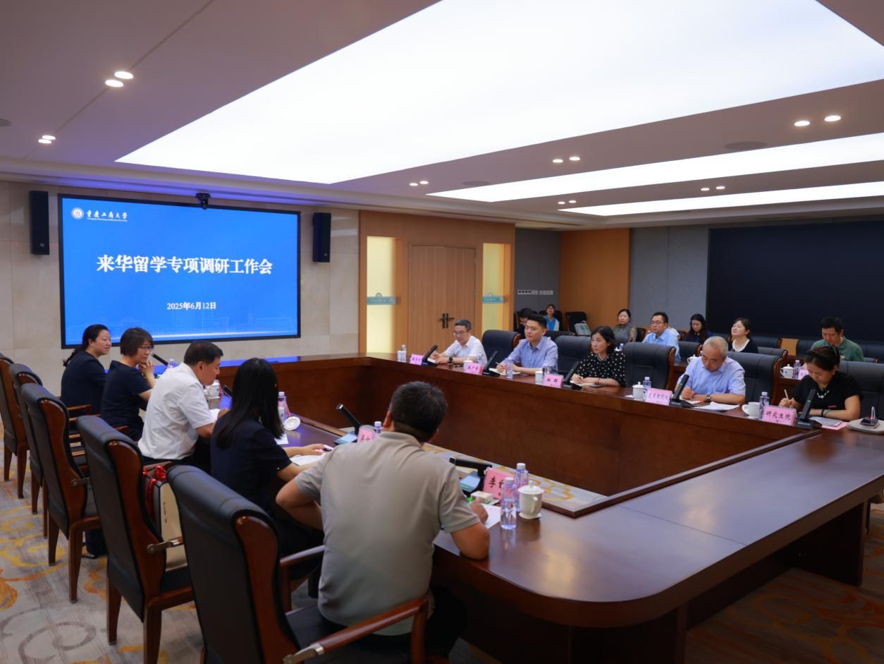 6月12日,教育部国际司二级巡视员席茹,重庆市委教育工委委员、市教委副主任金玲,来华留学专家组一行来我校调研来华留学专项工作,并对增设我校为教育部重庆市人民政府来华留学联合奖学金培养学校进行实地走访。学校党委书记曾维伦,党委常委、副校长柏群陪同调研。