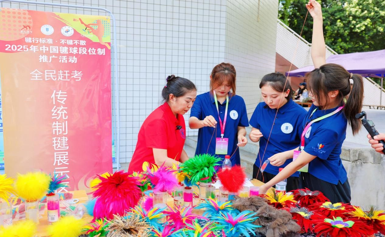 比赛现场还进行了毛毽传统制作技艺非遗展示,李兴兰女士带领师生沉浸式解锁这一非遗项目的完整工序,同学们在传承人手把手的指导下,亲身参与“十余道工序造一毽”的创作过程,在指尖的操作里触摸到非遗技艺的匠心,也让这场活动的文化底色愈发厚重鲜活。