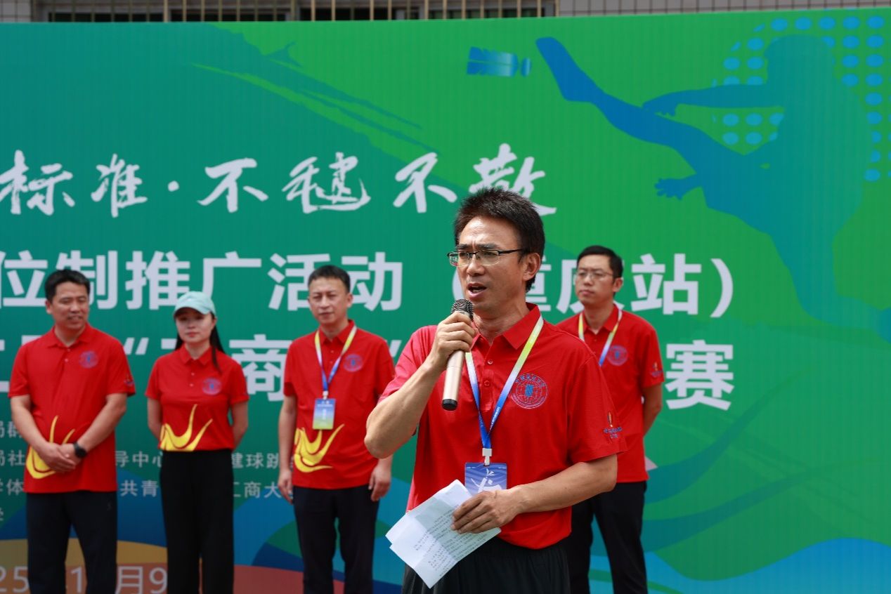 体育学院院长范文杰致辞。他对各位领导与嘉宾的到来致以热烈欢迎,向承办此次活动以及精心筹办的全体工作人员致以衷心感谢。他表示,毽球运动源远流长,集趣味性、健身性、竞技性于一体,是深受群众喜爱的民族传统体育项目。本次活动将国家段位制推广与高校赛事相结合,正是体教融合的生动实践,必将激发青年学子对毽球的热爱,营造浓厚校园体育氛围。希望全体参赛者赛出风格、赛出水平,展现毽球运动的独特魅力。