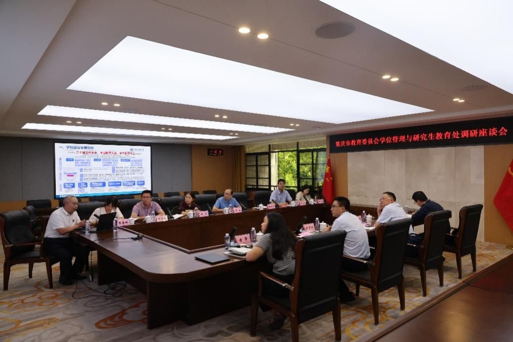 2025年9月30日,市教委学位管理与研究生教育处张永祥处长一行到校调研,座谈交流学校学科建设与研究生教育工作。
