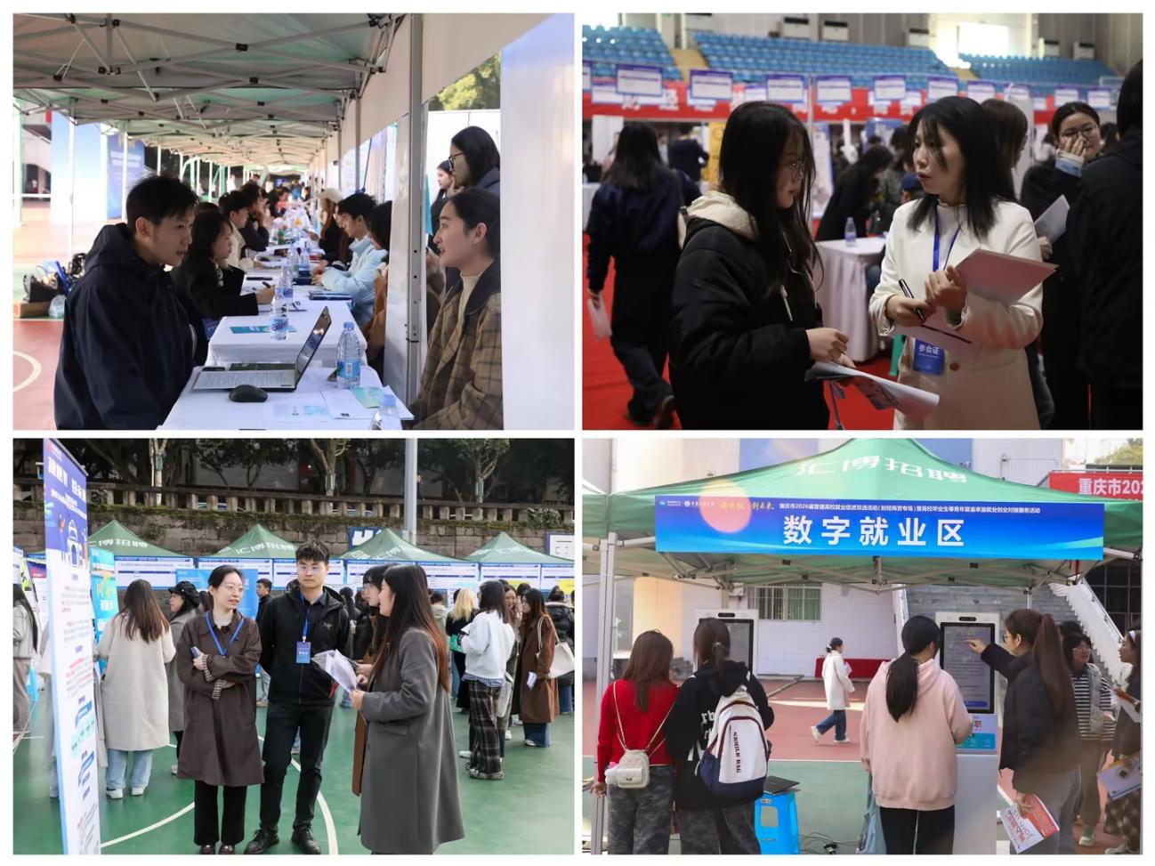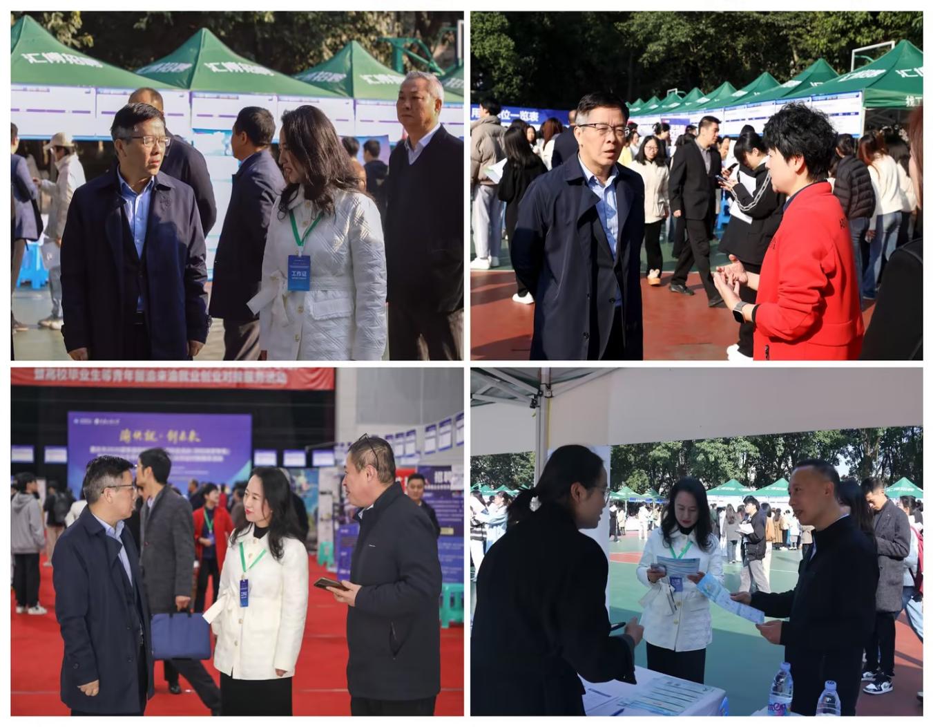 11月21日,由重庆市教育委员会、重庆市人力资源和社会保障局与乐鱼在线登录联合主办的“渝快就·创未来—重庆市2026届普通高校就业促进双选活动(财经商贸专场)暨高校毕业生等青年留渝来渝就业创业对接服务活动”在我校南岸校区体艺馆举行。学校党委书记曾维伦,党委常委、副校长李国军,市学生就业与创新创业服务中心副主任徐珮杰等领导到现场进行指导。