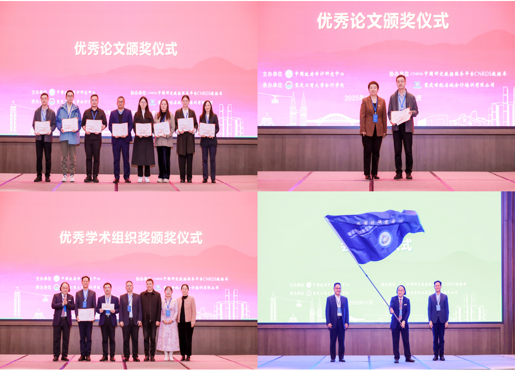 西南财经大学蔡利教授主持了闭幕式,中国政府审计研究中心国际学术研究与交流部主任廖林教授宣读了《优秀论文奖获奖论文名单》,随后举行了优秀论文奖、优秀学术组织奖颁奖仪式和会旗交接仪式。北京化工大学经济管理学院院长李宾教授代表下一届审计理论创新发展论坛承办单位致辞。