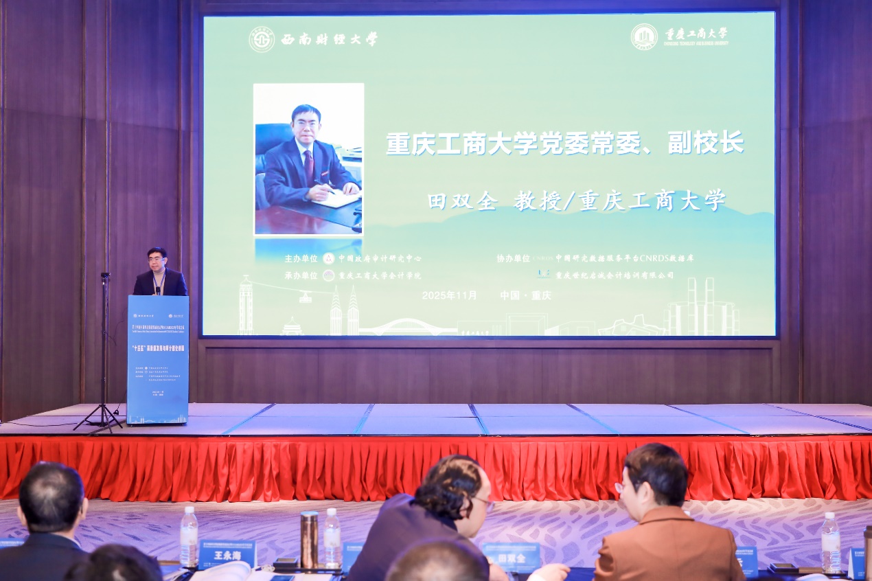 田双全对各位领导、专家及参会代表的到来表示热烈欢迎,对各方长期以来给予学校建设发展的关心支持表示衷心感谢。他指出,今年是“十五五”规划谋篇布局之年,审计如何立足“十五五”规划与2035远景目标,准确识变、科学应变、主动求变,以高质量审计服务党和国家发展大局不仅是党和国家赋予审计事业的重大历史使命,更是我们审计学界和实务界必须回应的时代命题。本次会议以“‘十五五’高质量发展与审计理论创新”为主题,汇聚多方智慧,精准回应了时代命题,必将为“十五五”时期审计理论创新与高质量发展提供有力支撑。