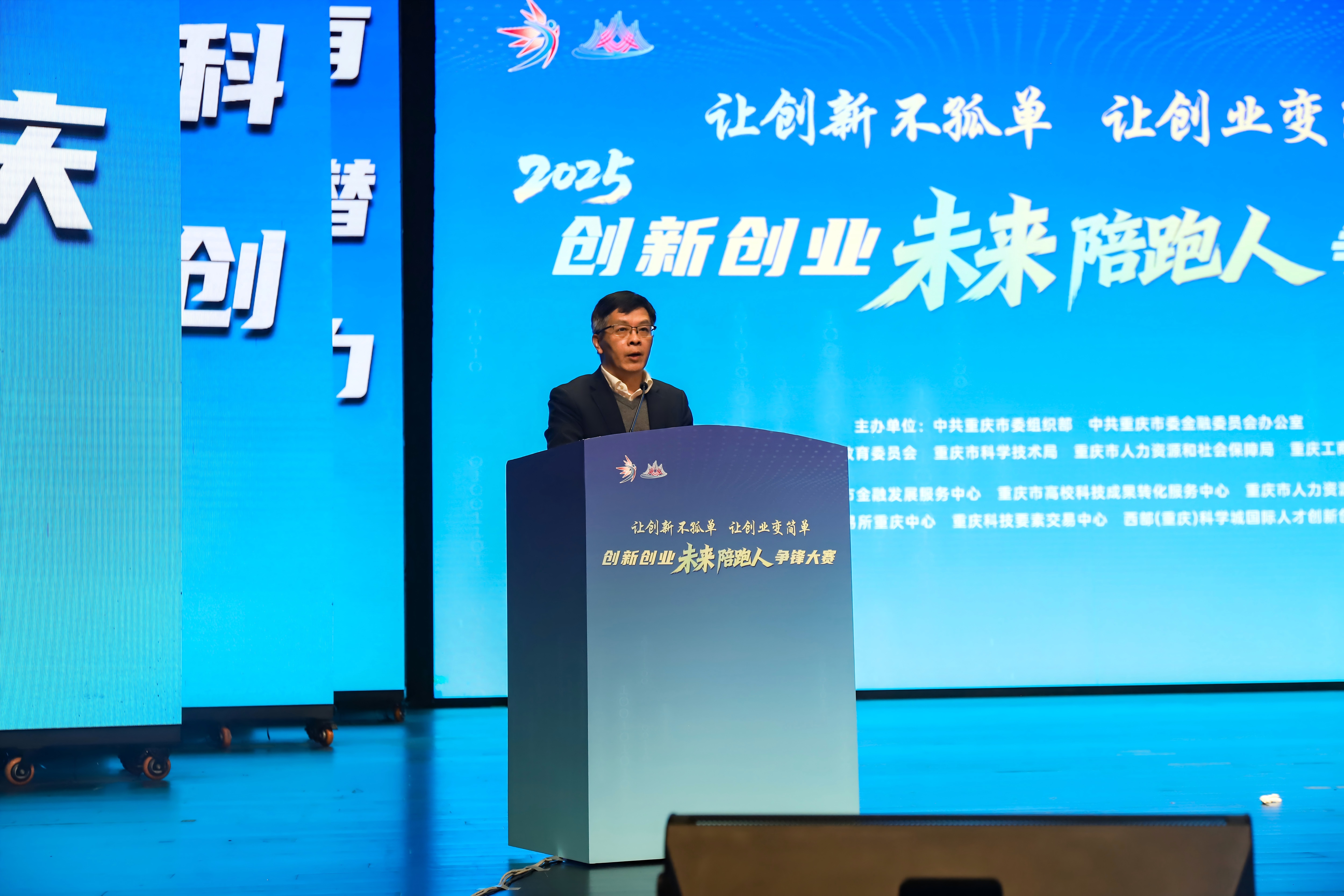 曾维伦在致辞中向到场的各位领导、专家和朋友们表示热烈欢迎,向所有获奖选手表示诚挚祝贺。他指出,当前重庆正锚定打造西部人才中心和创新高地,纵深推进人才创新创业全周期服务机制改革,着力破解创业路上的堵点难点,让人才在渝创新不孤单、创业变简单。面对时代使命,学校主动担当,通过大力实施“大商科+新工科”融合战略,强化有组织科研,推动学科与人才优势转化为服务国家重大战略和地方经济社会发展的现实动能。今年,学校设立重庆技术转移学院,在中西部率先开展技术转移方向研究生学历教育,开设科技金融、科创孵化、知识产权、评估评价四大专业方向,打造“陪跑队伍”人才摇篮。
