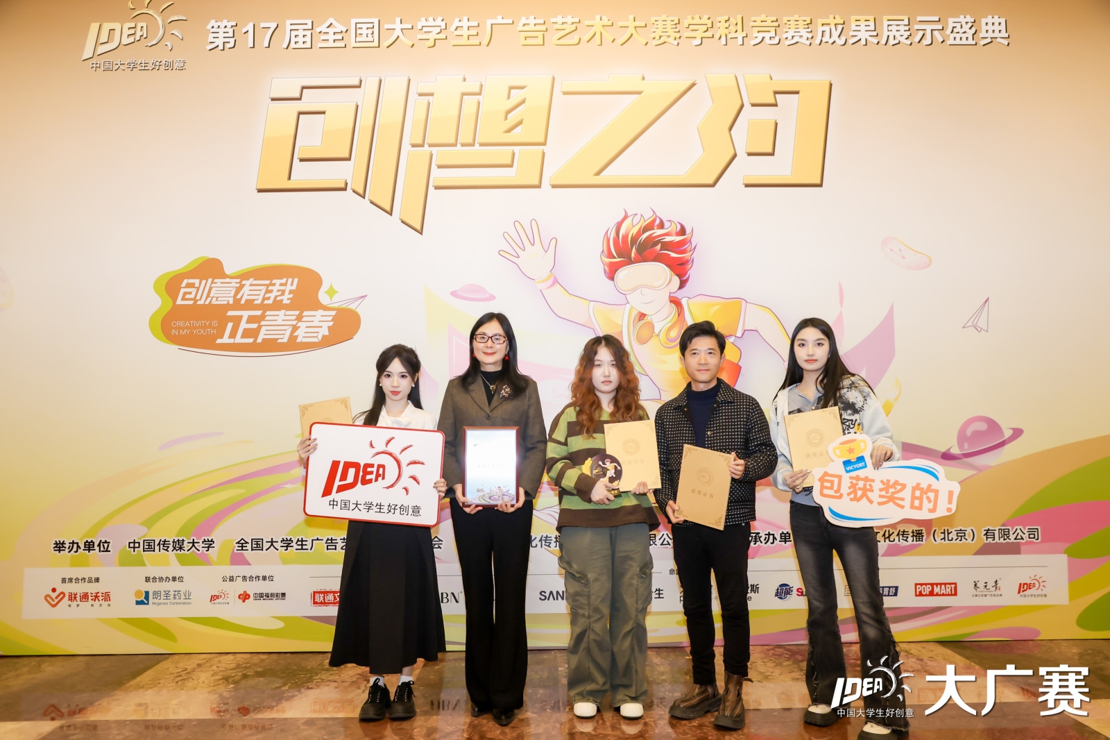 12月6日,第17届全国大学生广告艺术大赛全国颁奖典礼在北京政协礼堂举行。今年适逢大赛二十周年,吸引全国29个赛区、1912所高校的176万名师生参与,征集作品超58万件,经多轮评选,最终产生获奖作品约七千件。我校学子在专业教师指导下表现突出,荣获全国奖项43项,其中一等奖1项、二等奖3项、三等奖10项、优秀奖29项。我校荣获“优秀院校”,艺术学院沈正中副教授获评“全国优秀指导教师”。