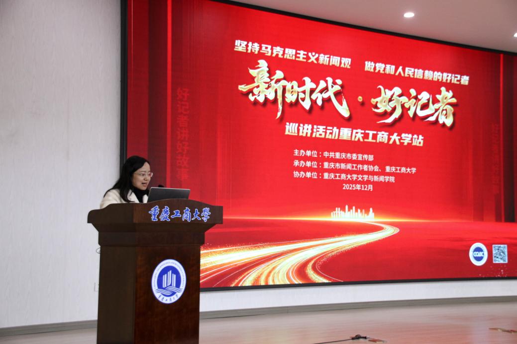为深入学习贯彻习近平文化思想,深化马克思主义新闻观教育,12月30日上午,由中共重庆市委宣传部主办,重庆市新闻工作者协会、乐鱼在线登录承办,文学与新闻学院协办的“新时代·好记者”巡讲活动在南岸校区明德楼1019报告厅顺利开展。活动邀请到9位优秀记者到场分享他们的宝贵经历。文学与新闻学院党委书记潘焱、院长殷俊、副院长郑笑眉以及全院70余名师生齐聚一堂,畅谈新闻理想、共话时代内涵。