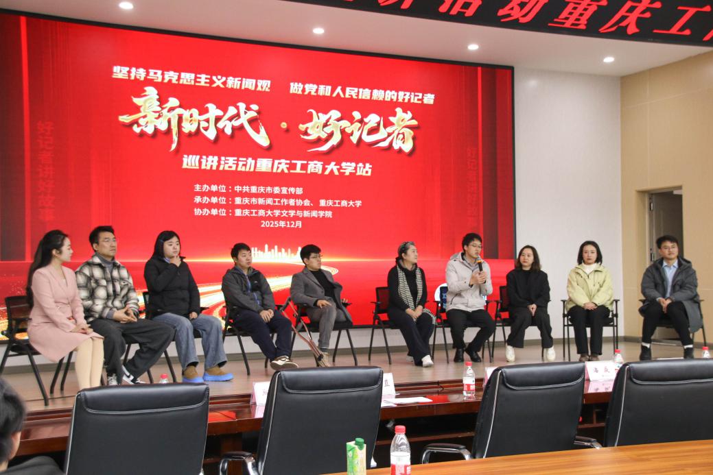重庆三峡融媒体中心记者刘婷茹深情讲述了“从泥土里长出的希望”。面对马家村白菜滞销的困境,她与团队共同参与破局,通过互联网在24小时之内帮助乡亲们卖出了24万斤白菜,将沾满“泥点子”的农产品转化成铺满“钱袋子”的致富路。中共重庆市委当代党员杂志社记者王柏林分享了自己“雪地寻亲”的故事——他与同事们累计寻访50余次,共走访100余人、查阅资料80多万字,最终共为45位烈士寻到了亲人。重庆日报记者张译文带来了器官捐献者、澳大利亚友人菲利普的感人故事。故事里,五位器官受捐者组建乐队巡回演出,只为实现菲利普的音乐梦。她表示,“生命不将就,生命才有意义。新闻不将就,新闻才有价值”。重庆巫山县融媒体中心记者熊威以《没有星空的“星空与山音乐会”》为题,讲述了山区孩子的追梦故事。他坚持“记者就是最棒的传声筒”、重视“走转改”,力求让更多的平凡故事走进千家万户。重庆日报评论员王祥即使左腿截肢,却仍然坚守在新闻一线,为弱者发声、为真相执言。他提到,一根拐杖锁不住追求真相的灵魂,“脚到不了的地方,思想可以”。重庆广电集团《今日关注》栏目记者陈正直讲述了自己暗访违规培训班、冒着风险取证的惊险经历。他强调,新闻工作者当坚持“镜头有光、脚下有路”,以舆论监督化解矛盾、促进治理,守护社会公平正义。华龙网媒体融合部记者秦思思讲述了自己从“新闻小白”到“斩获大奖”的成长历程。她秉持“让每一段努力的青春都被看见”,以耐心与共情记录普通人的追梦路,用新闻传递温暖与希望。重庆日报客户端记者解小溪分享了西部陆海新通道主题直播——《集装箱里看陆海》的制作过程。他表示,“文新学子”应在“真抓实干”中锤炼“四力”,用深度策划与温情表达“致广大而尽精微”。重庆广电集团交通频率新闻节目部记者张黎用作品《人民路上为人民》背后的创作故事强调了新闻人要以“对人民的敬畏”为初心,把话筒伸进街头巷尾,让新闻报道“更接地气、能触人心”。