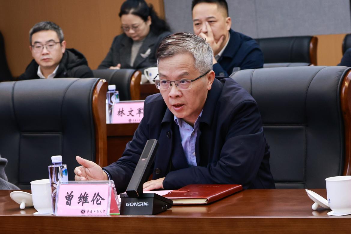 曾维伦代表学校对廖志坤一行到校调研交流表示热烈欢迎,对湖南工商大学一直以来给予我校的支持表示衷心感谢。曾维伦从学校的学科建设、人才培养、“商工融合”发展成效、学术治理改革、有组织科研、科研创新、教学成果评价体系等方面介绍了学校的基本情况,并希望双方能够加强合作,为同类院校的创新发展贡献力量,协同服务好国家重大战略需求和地方经济社会发展。