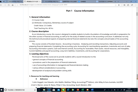 本学期我担任的主要课程是《会计学(全英文)》。《会计学》对于大一的学生本身具备一定难度,采用全英文教学,更是对老师的教学和学生的学习提出了双重挑战。所以,采用网络教学的方式必须经过充分的准备。因此,我从以下方面做了准备工作。