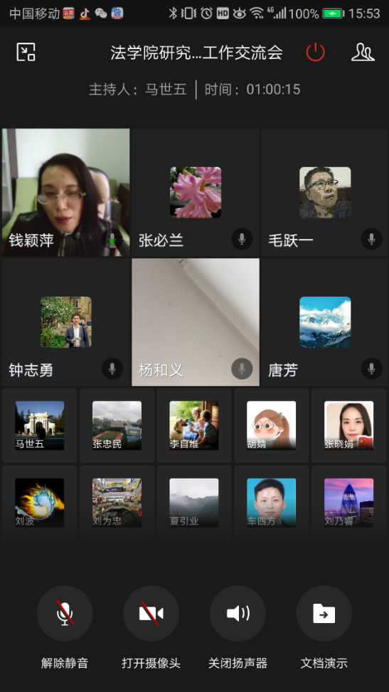 研讨交流会上,谭湘渝、唐芳等23位老师先后发言,为提高法律硕士研究生在线教学质量贡献智慧。老师们主动学习钻研在线教学技术,不断总结和探索各种教学平台的利用方法,广泛利用北大法宝视频库、人大社法学电子教材、中国慕课、中国法律资源库、云课堂、QQ等各类优质在线课程资源、平台开展在线教学,并结合自己开展在线教学的经历,从课程准备、在线教学形式、教学内容、教学效果与反馈、企业微信、QQ群视频及慕课的选用等方面,交流了在线教学过程中的教学经验、遇到的问题和应对方法。大家认为,要做好充分的课前准备,尤其课前资料的精心准备,是在线课程取得良好效果的重要保障;要选择合适的交流平台,精心做好教学设计和利用不同信息平台作好多种授课预案,灵活应对授课过程中出现的教学问题;要充分运用多种网络教学平台、软件和企业微信系统工具,加强课程考勤和互动,努力调动学生在线学习的积极性;高度关注学生参与课堂教学、讨论的情况,根据学生反馈的学习状况,及时调整教学设计与教学内容,保障教学效果,最终保障人才培养质量。