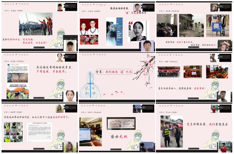 活动中8位同学从不同视角分享了各自不同的战“疫”记忆,却给人带来了同样一份感动与激励。与会同学纷纷在评论区留言为中国加油,向战“疫”人致敬。