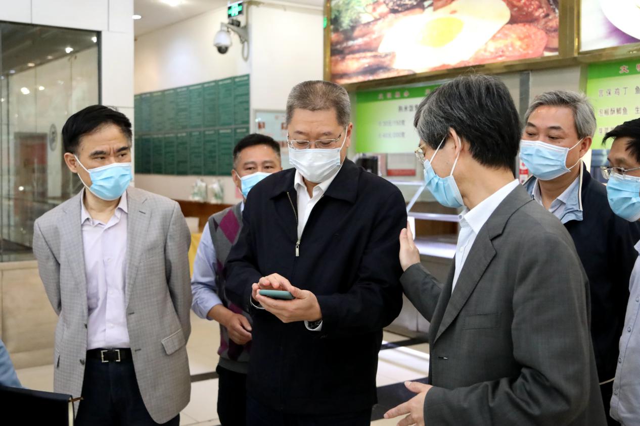 4月29日,市委教育工委书记、市教委主任黄政一行来到乐鱼在线登录检查疫情防控及开学前准备工作,黄政走进学校食堂,了解食堂取餐用餐、错峰就餐等情况,检查饭菜质量及食品卫生;检查学校开学前防控物资储备和设置隔离点情况,在学校健康观察点向医务人员表示感谢。黄政要求,一定要把疫情防控工作作为当前重中之重的任务,切实保障师生员工的身体健康和生命安全,从严从实从细从快落实好各项防控措施,坚决打赢高校开学复课这场疫情防控阻击战。