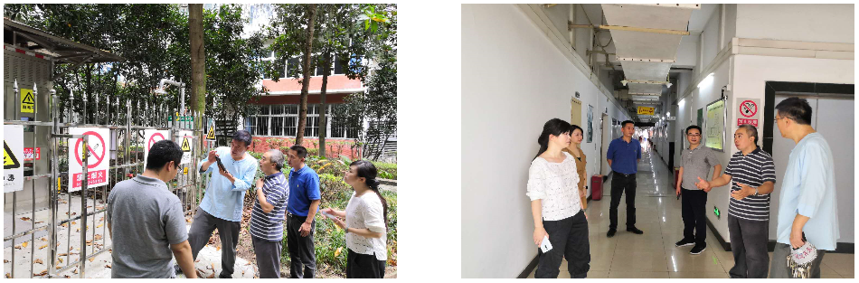 环境与资源学院院长王星敏、中心主任王崇均分别介绍了学院实验室安全和危化品的管理工作。检查小组一行实地查看了实验废水处理装置、危化品储存室及假期开放的实验室,对实验室药品安全、仪器设备使用安全、危险化学品存储及使用等一系列问题进行了仔细检查。